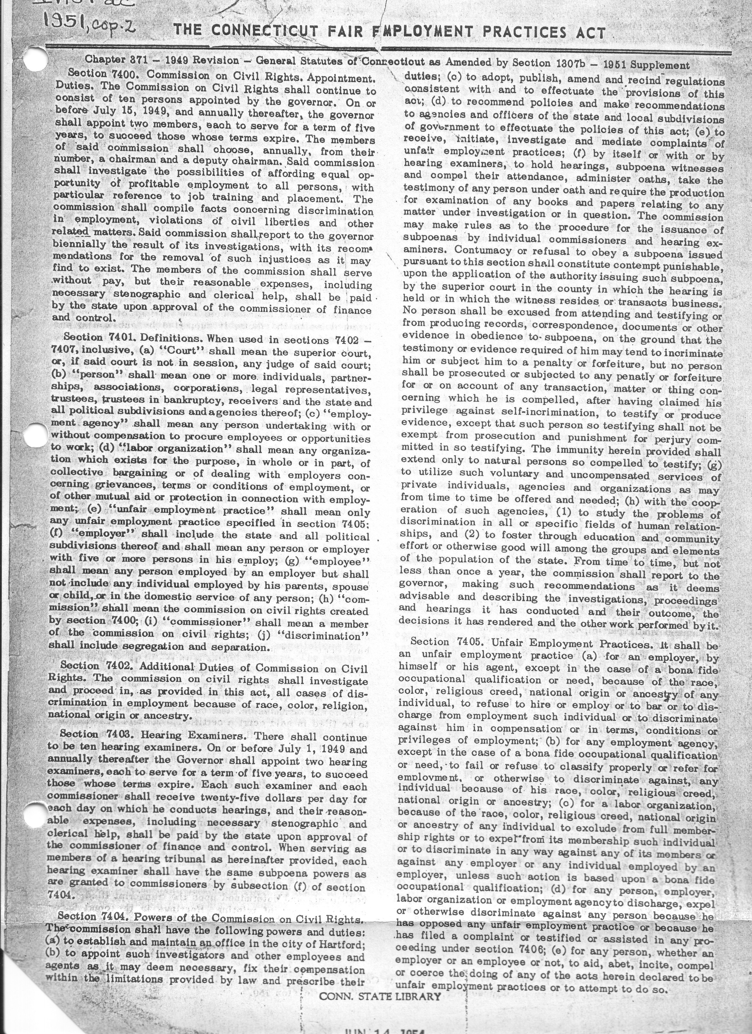 Actual text of The Connecticut Fair Employment Practices Act